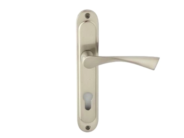 Klamka ROMANA 90mm pod wkład z szyldem długim satyna M9